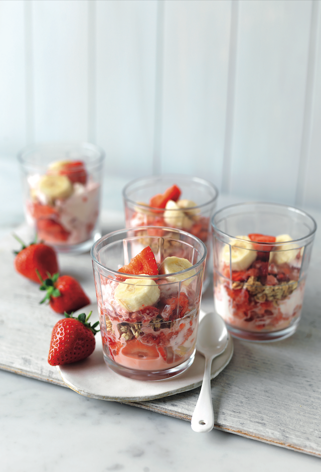 Strawberry swirl yoghurt & banana sundaes