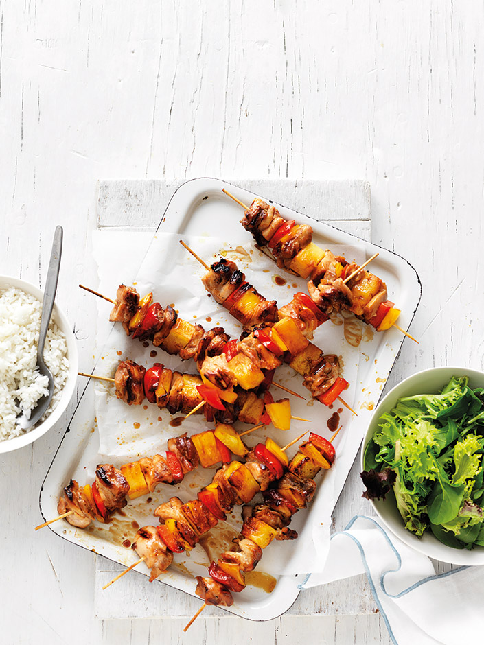Teriyaki Pineapple, Capsicum & Chicken Skewers