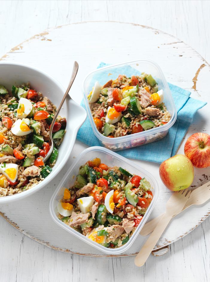 Tomato, egg & tuna brown rice salad