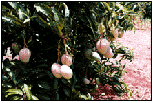 This is a sweet, firm-fleshed mango with a dark red blush. It’s in season from January to March.