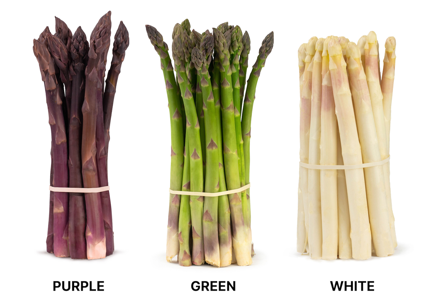 My spears come in green, white and purple colours. They’re harvested in two ways which give us a different colour.