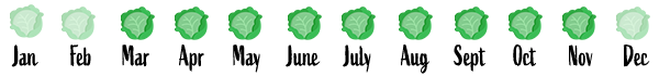 We’re a large ball-shaped cabbage with crinkly leaves that range from light green to bluish/green. The outer leaves are the deepest colour.