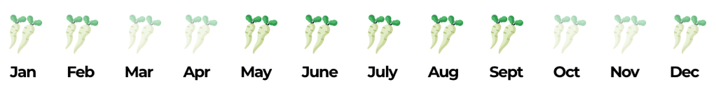 We're grown in well-drained fertile soil. Our seed is planted in July-August and can take up to 6 months to mature into a firm carrot-sized root. We're harvested, when our top is about 4cm in diameter, by a machine that digs us out and picks us up at the same time. Our tops are cut off, and we're cleaned and packaged, ready to be sent to the markets.