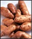 German in origin, we're a long, oval potato with yellow skin and flesh and a really nutty taste. We can be steamed, braised, boiled, microwaved or used in a salad.