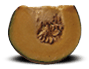 We're an attractive, squat, ribbed pumpkin with grey-green skin mottled with yellow and brown. Our flesh is sweet, nutty and yellowish orange.